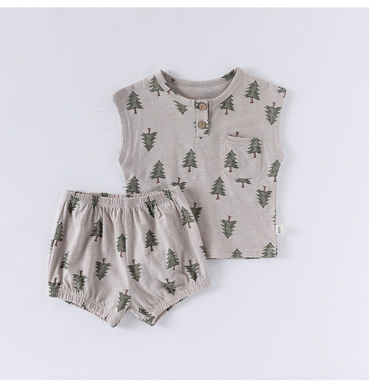 Summer Arrival Baby Unisex Sleeveless Fruits Pattern Top Vest and Shorts Clothing Sets