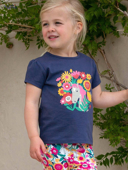 Summer Girls’ Pony and Flowers Pattern T-shirt in European and American Style