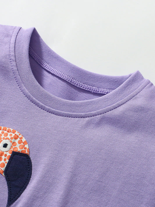 Girls’ Flamingo Cartoon Pattern Short Sleeves T-Shirt In European And American Style For Summer