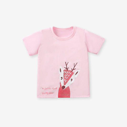 Girls’ Cute Fox Cartoon Pattern Short Sleeves T-shirt in European and American Style for Summer