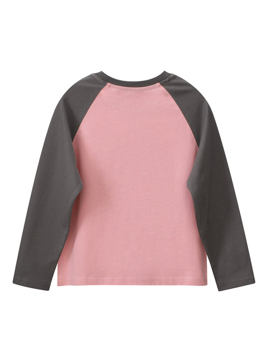 Spring Arrival Kids Girls Letters Print Crew Neck Long Sleeves Color Patchwork Top
