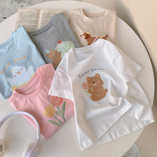 Baby Cartoon Graphic Cute Style Short Sleeve Quality Tops