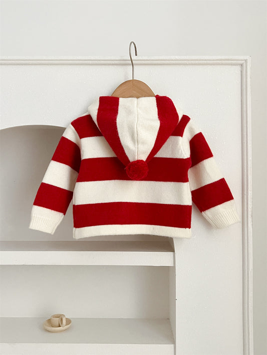 Arrival Baby Kids Girls Striped Color Patchwork Single Breasted Knitwear Hoodie