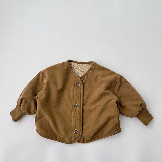 Baby Boy And Girl Vintage Style Lambswool Padded Thickened Jacket