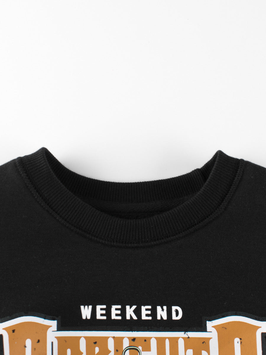 Arrival Kids Letters Printed Pattern Crew Neck Long Sleeves Warm Cozy Pullover