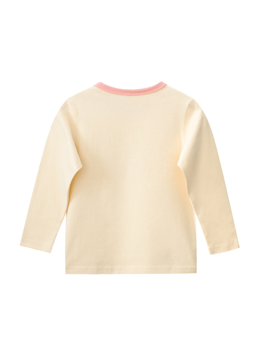 Autumn Arrival Kids Girls Teddy Print Crew Neck Long Sleeves Color Patchwork Shirt