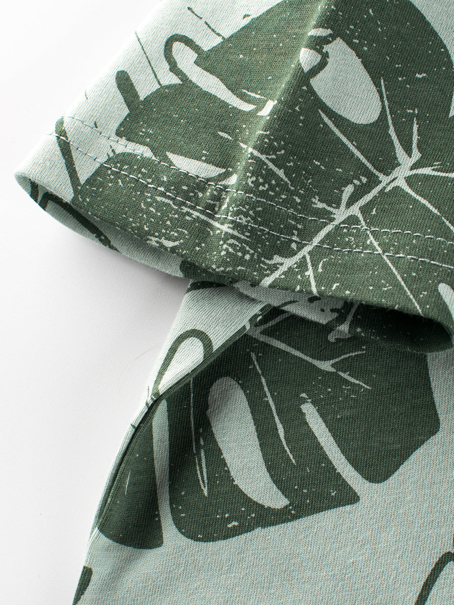 This boys’ T-shirt features a distinctive printing pattern inspired by European and American summer styles. Crafted for comfort and breathability, it is ideal for warm-weather wear. Its contemporary design adds a refined touch to casual outfits, making it a versatile choice for young wardrobes.