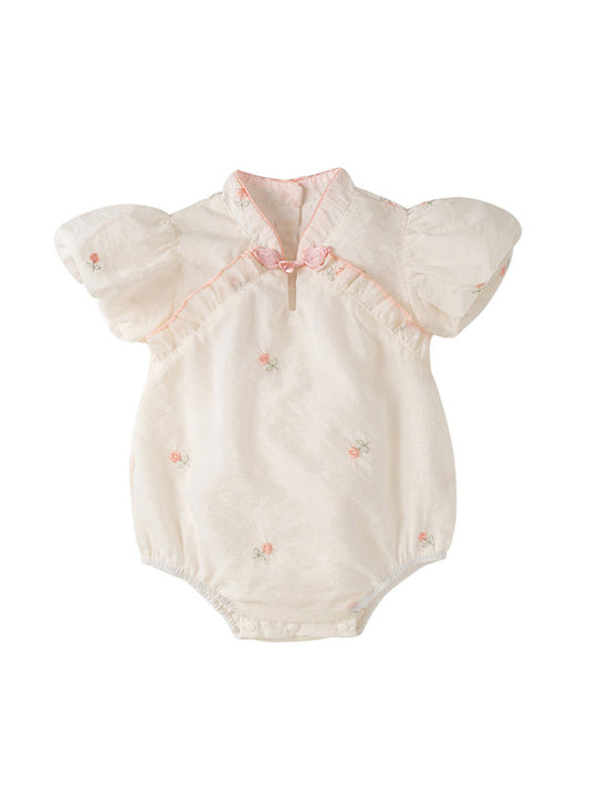 Summer Design Baby Girls Light Floral Pattern Short Sleeves Stand Collar Sweet Cute Onesies