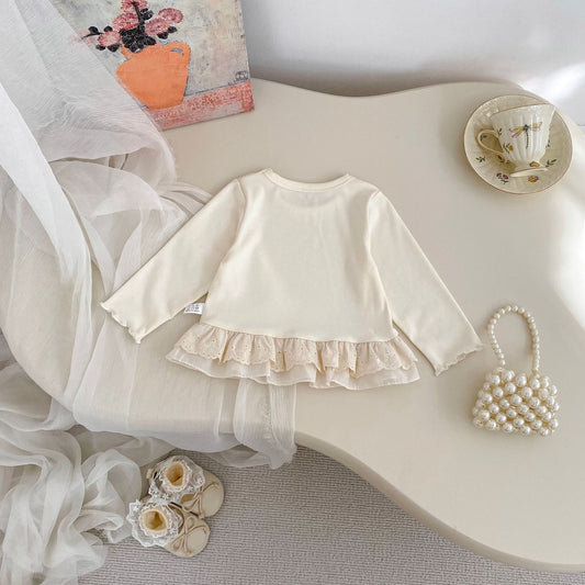 定價 ¥493.00 CNY定價單價 / 每售價 ¥493.00 CNYSpring Baby Kids Girls Long Sleeves Cute Lace Trim Top and Denim Jeans Clothing Set