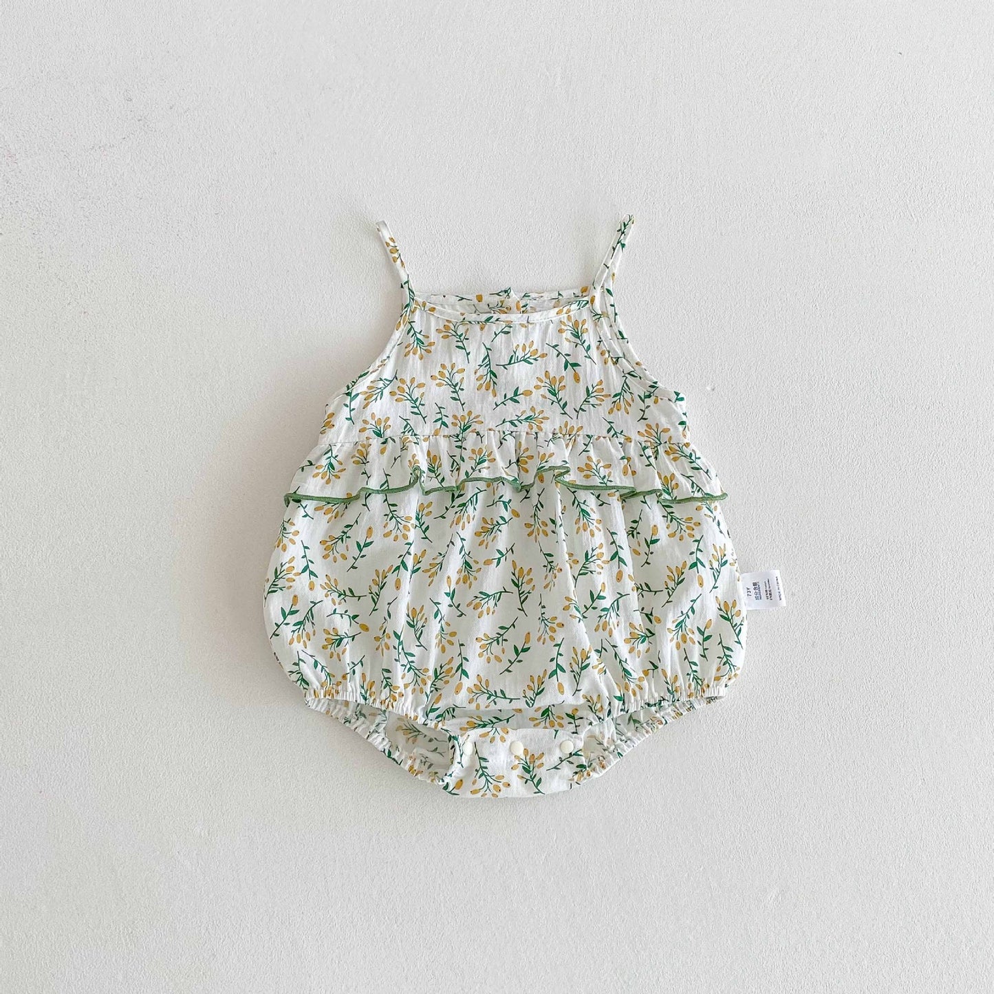 🌼 Charming Floral Overalls: Features delicate strap bodysuit with a refined floral pattern.