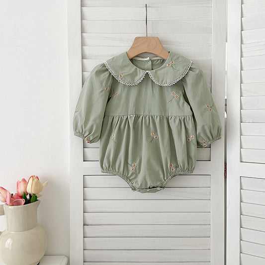 Arrival Autumn Baby Kids Girls Long Sleeves Daisy Floral Embroidery Pattern French Collar Onesies and Dress – Princess Sister Matching Set