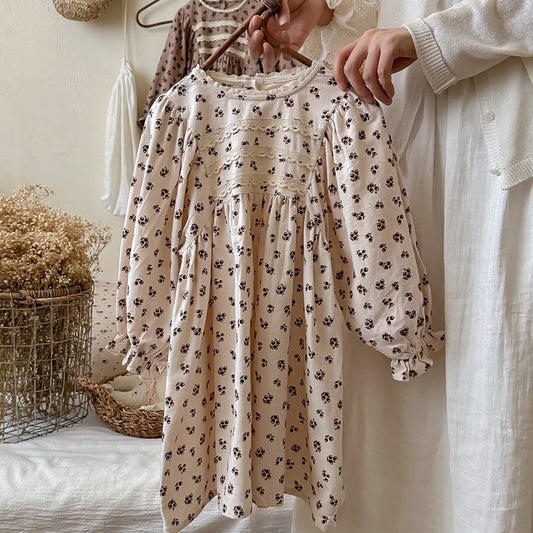 Arrival Autumn Girls Vintage Ruffle Neck Long Sleeves Floral Pattern Dress
