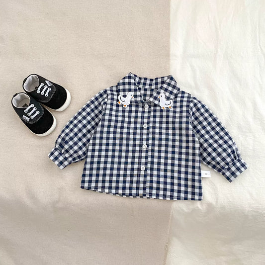 Spring and Autumn Baby Kids Boys Butterfly-bow Decorated Shirt and Sleeveless Plaid Strap Overalls Clothing Set