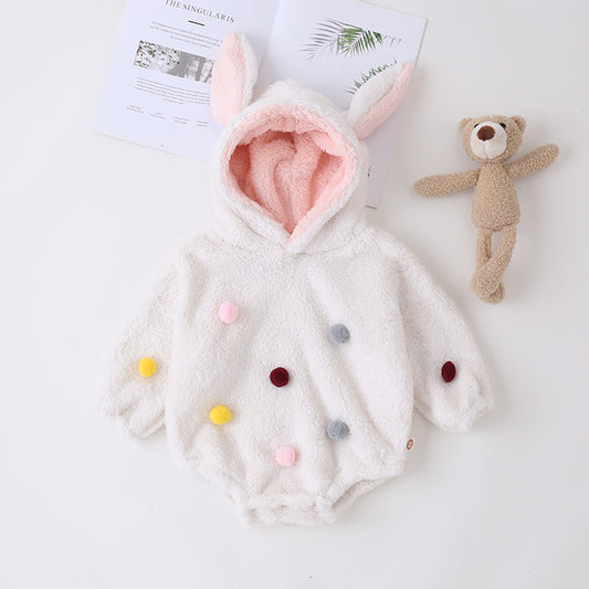 Design Baby Girls Polka Dots Pom Pom Hooded Onesies