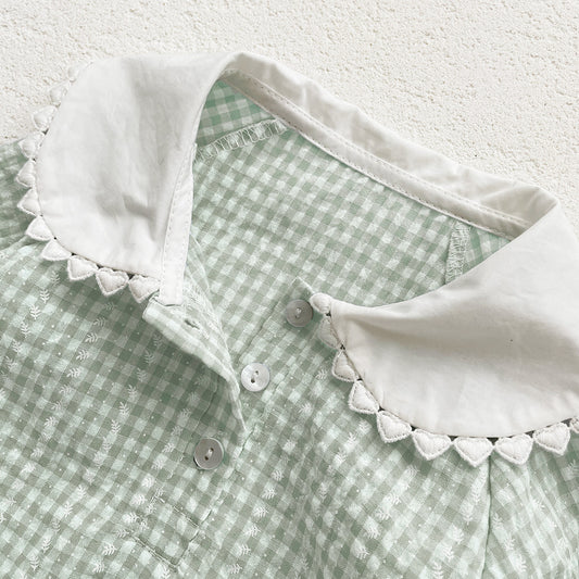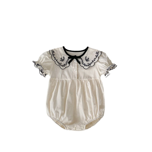 Summer Baby Girls Vine-Embroidered Collar Short Sleeves Onesies