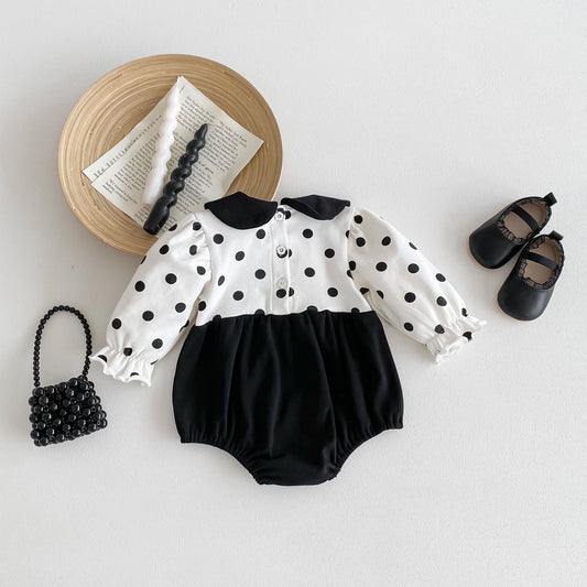 Spring Arrival Baby Long Sleeves Black Polka Dots Onesie For Girls