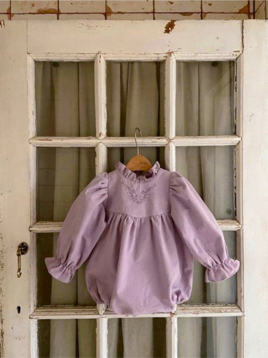 Arrival Baby Girls Purple Long Sleeves Vine Embroidery Onesie