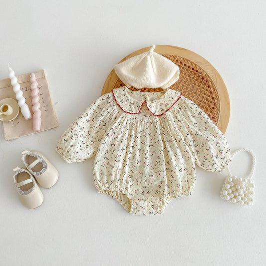 Spring Arrival Baby Girls Floral Long Sleeves Peter Pan Collar Onesie