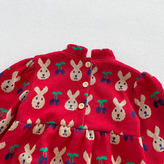 Infant Baby Girls Rabbit&Cherry Around Long Sleeve One Piece