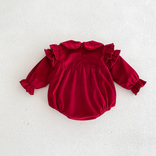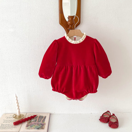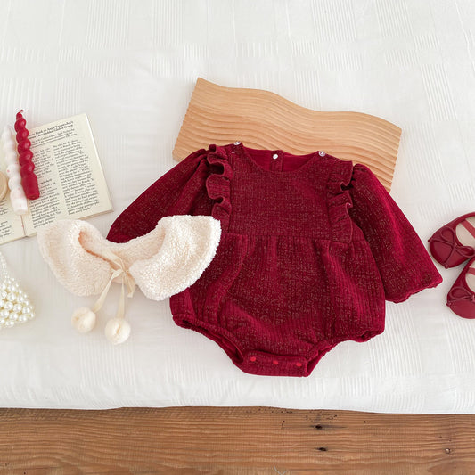 Arrival Baby Girls Solid Color Long Sleeves Red Ruffle Thick Princess Onesie