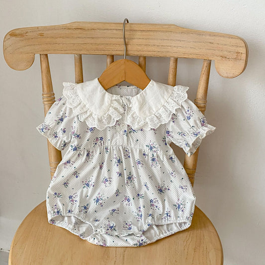 Baby Girl Floral Print Round Collar Short-Sleeved Onesies Buttons Front Design