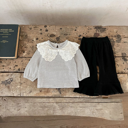 Spring Baby Kids Girls Hollow-Out Collar Top And Flared Pants Clothing