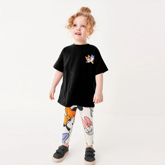 Girls Colorful Crab Cartoon T-Shirt And Black Pants Set