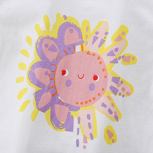 Summer Baby Kids Cartoon Sunshine Pattern T-shirt and Striped Shorts Clothing Set for Girls