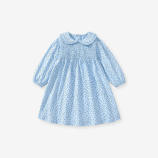 Design Autumn Girls Little Flowers Pattern Peter Pan Collar Long Sleeves Blue Dress