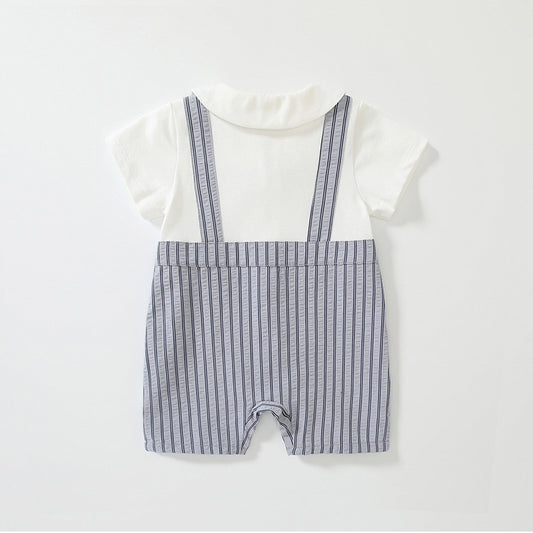 Summer Arrival Baby Boys Short Sleeves Cute Striped Overalls Pattern Rompers