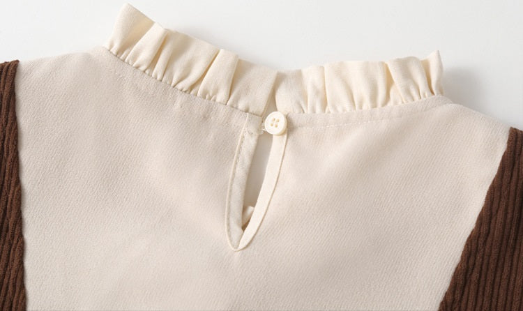 Preppy Corduroy Long Sleeves Ruffle Crew Neck Thick Dress